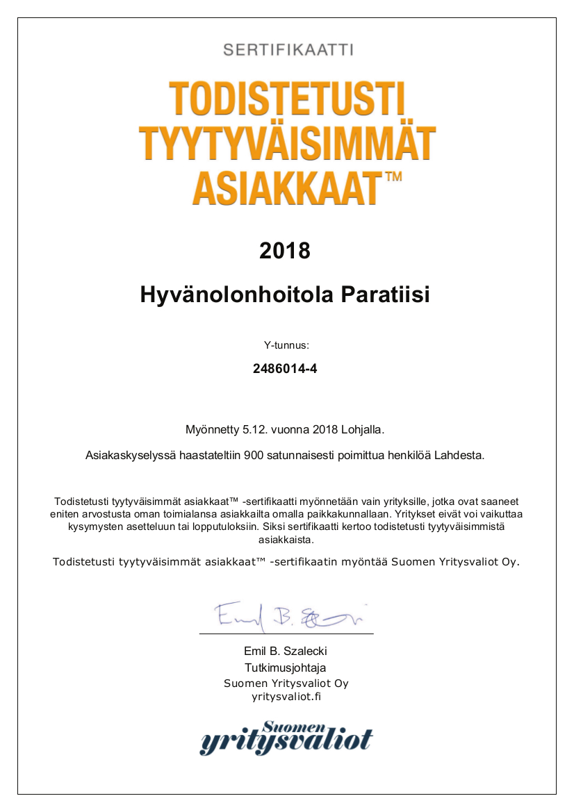 Hyvänolonhoitola Paratiisi Mallaskatu 4 15140 LAHTI 0405320606 posti@paratiisihoitola.fi